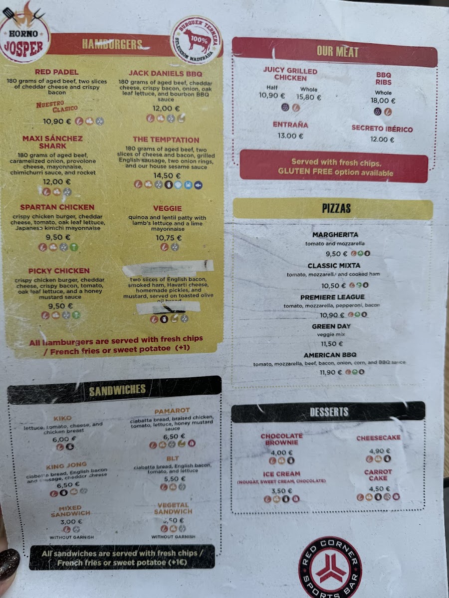 Red Corner's menu is a delightful mix of offerings, featuring everything from juicy burgers to inexpensive but satisfying "Menu Del dia" options, all priced around 12 euros. Diners can relish two small meals, dessert, and a drink, ensuring great value without sacrificing taste. The friendly staff adds to the experience, making each visit feel special.